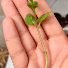 I cut a mint stem under a leaf node, and then removed the bottom leaves and placed it into the foam collar and then net pot. Placing a bottomless plastic bottle over the cutting is advised to prevent it drying up.